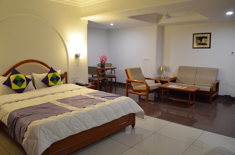The suite is designed to help you relax and unwind. These rooms offer the best of amenities including dining table. Each room features a City View balcony.Room size is 312 sq. ft. ("All Rates are for Single Occupancy For Extra Occupancy ₹450 will be charged Plus Taxes")